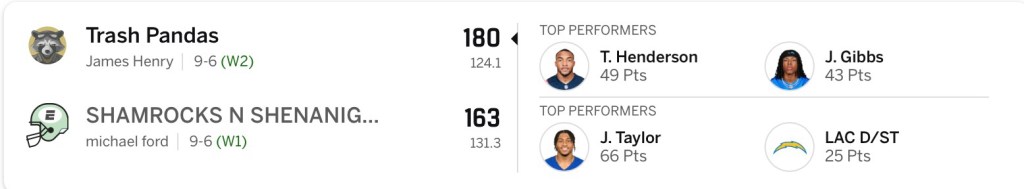 I won the RB duel 55-4 despite Jahmyr Gibbs only putting up 5 points because TreVeyon Henderson exploded for 50!