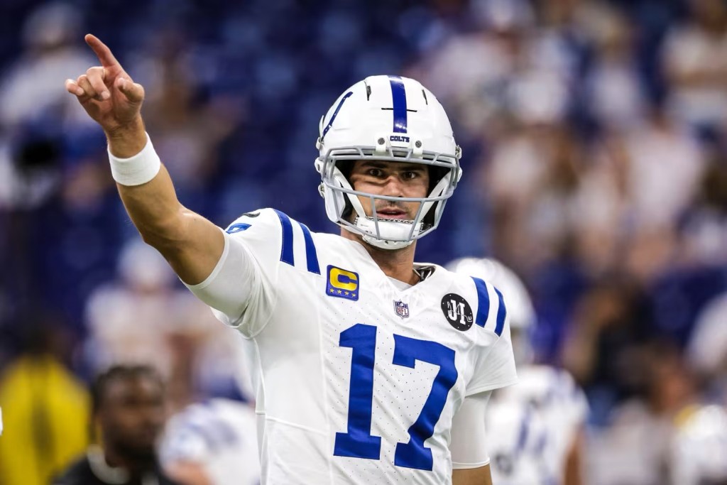 Daniel Jones, quarterback, Indianapolis Colts. Photo Credit- Michael Hickey/ Imagn Images